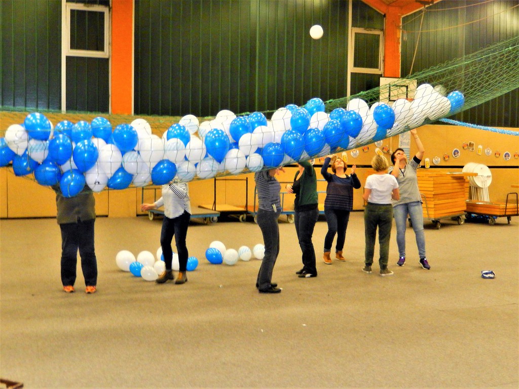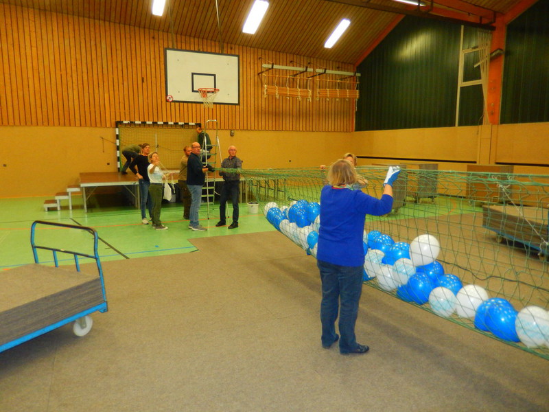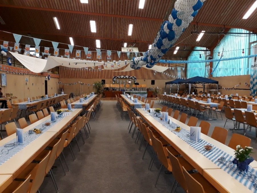 So staunten die Gäste am Abend nicht schlecht über eine so schön und umfangreich dekorierte Sporthalle. Aus der kühlen und zweckmäßigen Halle war ein richtiges Festzelt entstanden. Alles strahlte in weiß-blauen Farben.