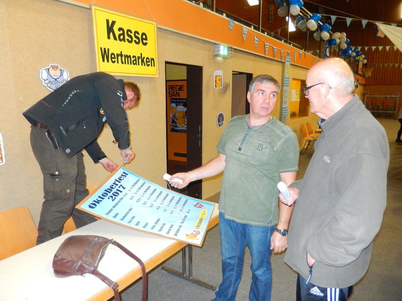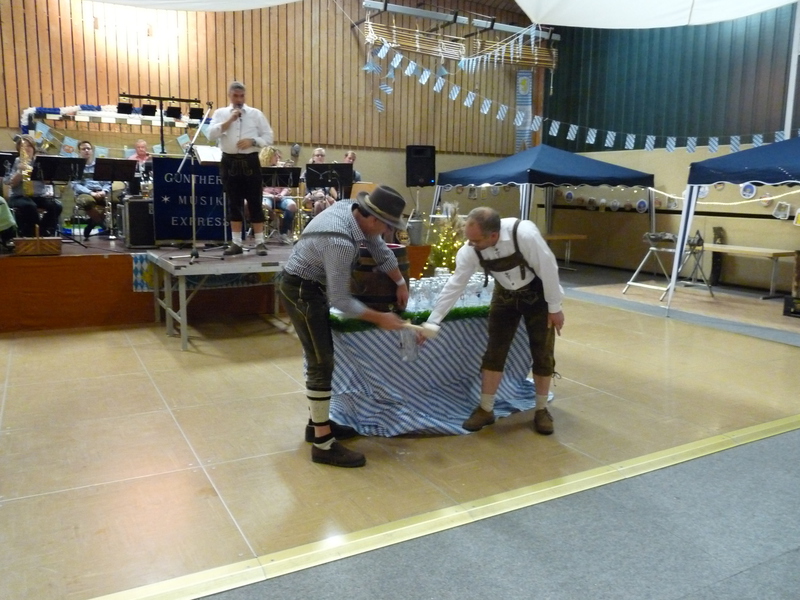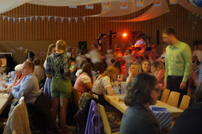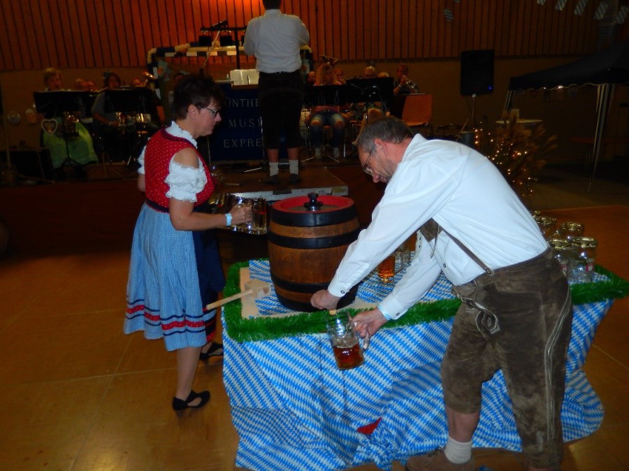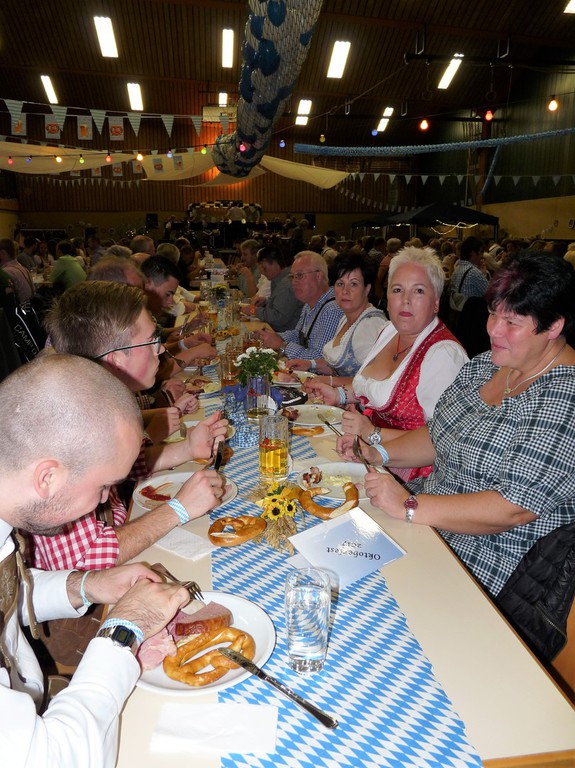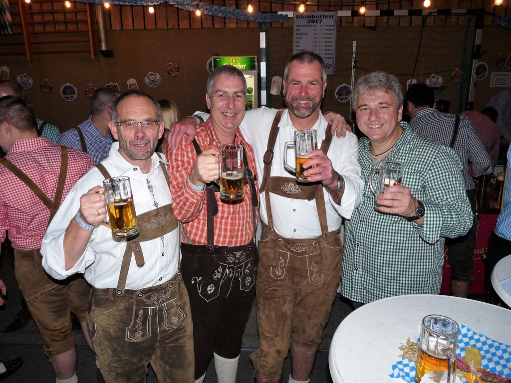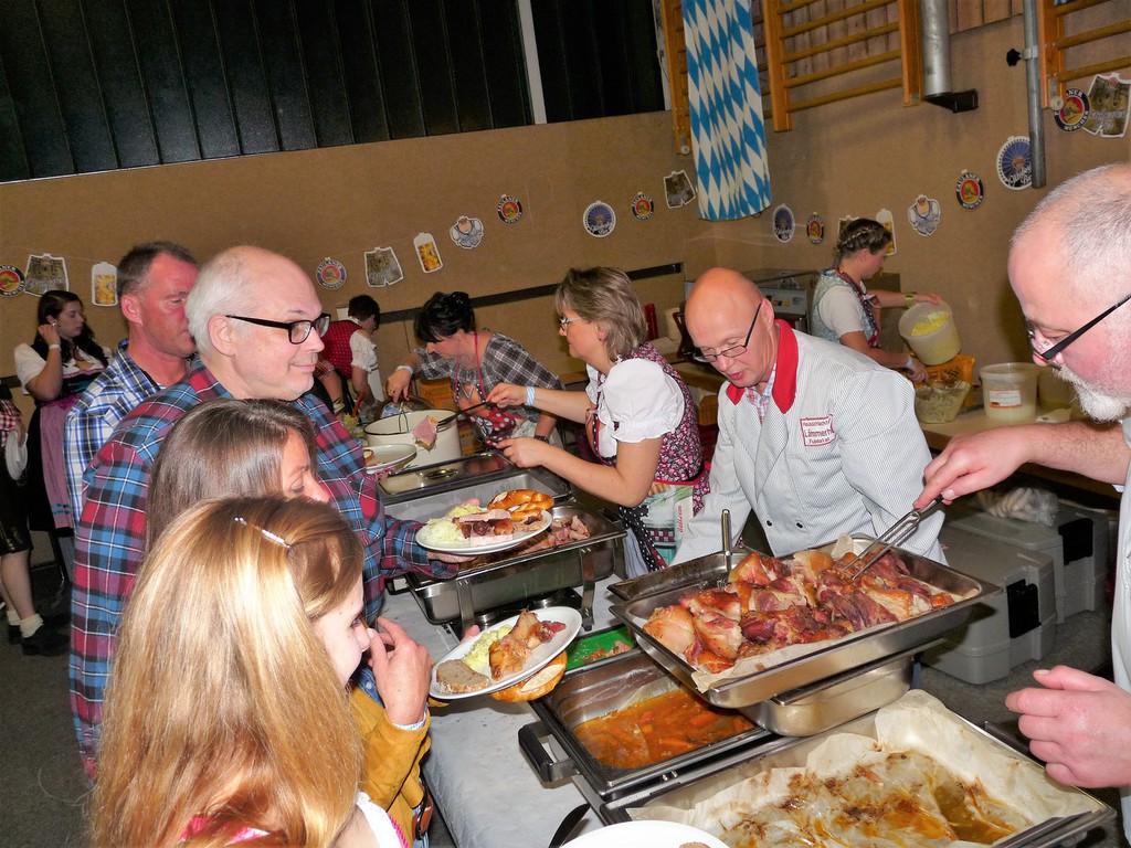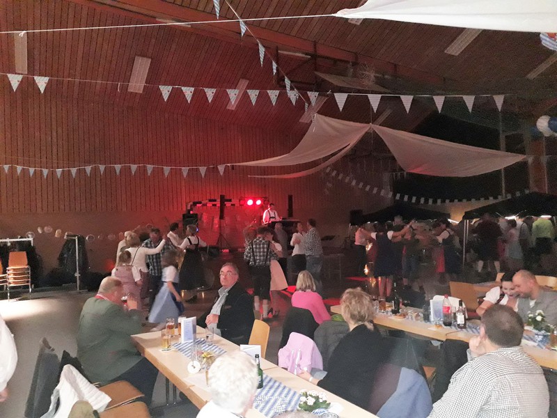 „Im ganzen Dorf habe ich gestern nur Dirndl und Lederhosen gesehen!“ Dies waren die Worte der Lieferantin, als sie am Sonntagmorgen ihre Utensilien abholte. Und genau so war es gefühlt auch. Dass unser Angebot eines Oktoberfestes so gut angenommen würde, hätte sich der Vorstand wahrlich nicht träumen lassen. Hatten wir bei der ersten Planung noch Überlegungen angestellt, wie man die Halle ggf. optisch etwa verkleinern könne, zeichnete sich einige Tage vor der Veranstaltung ab, dass man sich eher um mehr Plätze, Essen und Getränke etc. kümmern musste.