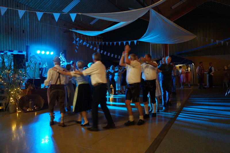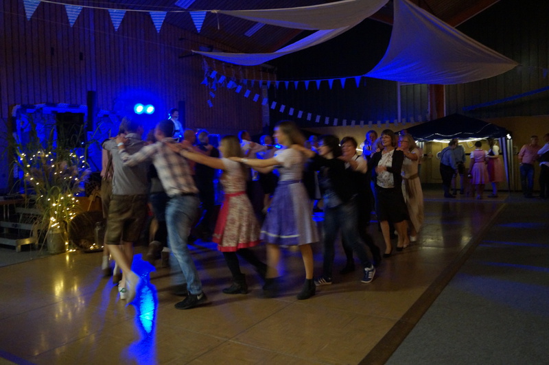 Und wer gerade nicht tanzte, konnte sich mit Wettnageln, Fingerhakeln oder Holzsägen die Zeit vertreiben oder einfach mit seinen Freunden und Bekannten in lockerer Runde zusammen sitzen und den Abend genießen.