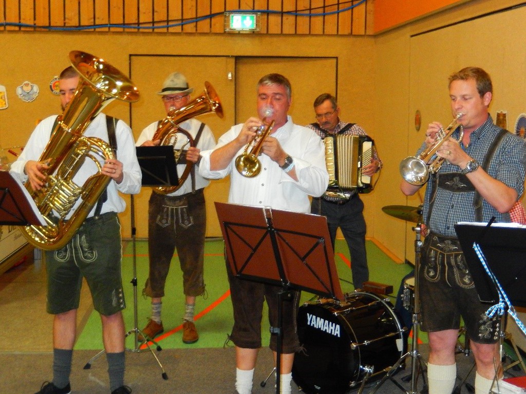 Begrüßt wurden die Gäste schon von einigen Mitgliedern des Musikzuges, die spontan ein paar zünftige Lieder zur Verkürzung der Zeit aufspielten und die Gäste einstimmten bevor dann der komplette Musikzug die Unterhaltung übernahm.