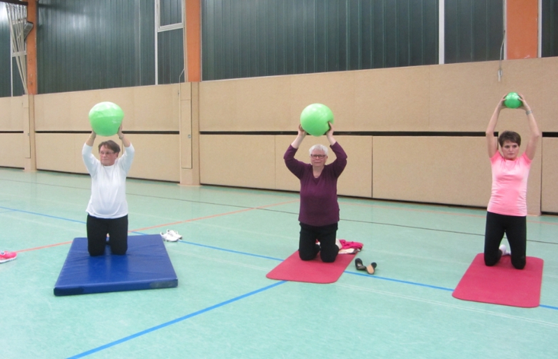 durchgeführt. Bei Übungen auf der Matte wird im Sitzen und Liegen die Rumpfmuskulatur gestärkt. Die Übungsleiterinnen achten darauf, dass alle verschiedenen Aspekte des Präventionssportes bedient