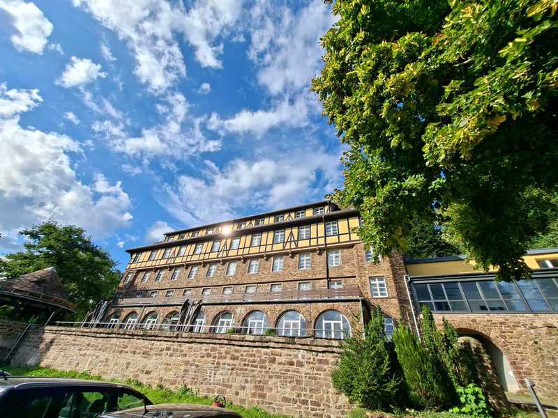 Am Freitag starteten wir in Fahrgemeinschaften in die nördlichste Gemeinde Hessens. Die Jugendherberge - ein altehrwürdiges viergeschossiges Fachwerkgebäude aus Wesersandstein - sollte die nächsten zwei Tage unsere Herberge sein. Der denkmalgeschützte Bau hat das größte, mit Wesersandstein (Solling genannt) gedeckte Dach Hessens. Nach unserer Ankunft bezogen wir den kompletten 4. Stock (die vielen Stufen dorthin nahmen wir sportlich, auch in den darauffolgenden Tagen) und kurz danach erwartete uns bereits ein wirklich leckeres Abendessen. Den restlichen Abend verbrachten wir schnatternd, gackernd und tanzend auf der Terrasse bei herrlichem Spätsommerwetter - ein durchaus gelungener Einstieg in unser team-building-event.