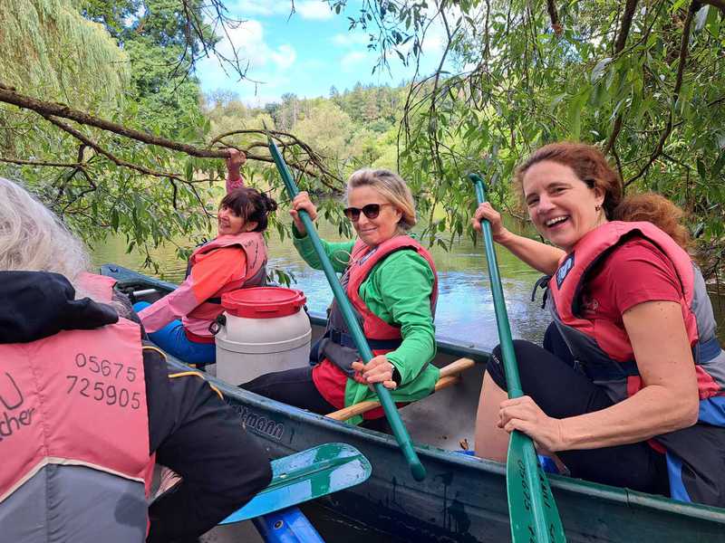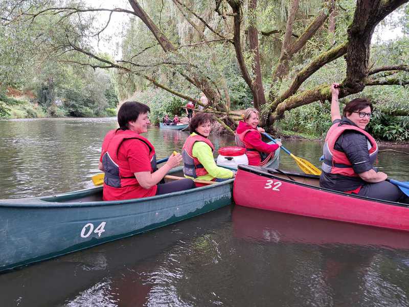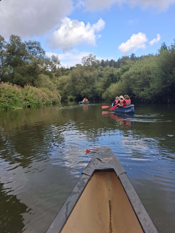 Am Samstag wurden wir nach einem reichhaltigen Frühstück vom Team „Kanu Schumacher“ abgeholt und nach Trendelburg gebracht. Dort ging es aufs Wasser – konkret auf die Diemel.