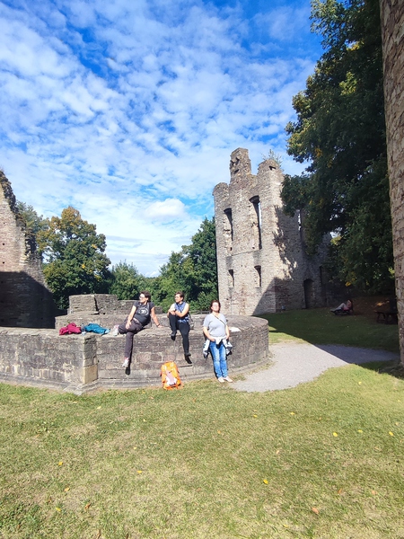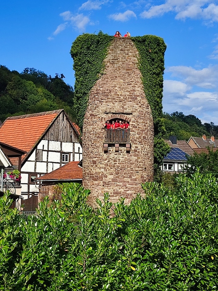 Einigen von uns war bereits bekannt, wie eine Kanutour funktioniert, aber keine von uns wünschte sich, unfreiwillig baden zu gehen... Nach einer kurzen Einweisung und selbstverständlich ausgestattet mit Schwimmwesten starteten wir in Dreiergruppen unsere ca. 12 km lange Tour. Gemächlich paddelten wir auf der Diemel dahin und genossen die Ruhe, die Natur und die etwas andere Perspektive. Immer wieder sorgten Sohlschwellen und flottere Strömungsabschnitte für Erheiterung der Kanubesatzung. Ob es sich um Paddel-/Steuerfehler oder Übermut handelte, wenn eins der Kanus im Uferbereich landete, Pirouetten drehte oder sich auf einer Kieselbank festsetzte, bleibt ungeklärt oder wird dezent verschwiegen. Kurzum, wir hatten gemeinsam jede Menge Spaß bei absolut tauglichem Wetter. Dass es letztendlich doch ein Boot traf, welches kenterte und seinen „Inhalt“ ausschüttete, war sehr unglücklich und für die Betroffenen äußerst unschön. Mit gemeinsamen Kräften retteten wir die Situation, versorgten die „Schiffbrüchigen“ mit trockener Kleidung, Trost und organisierten den Transfer zurück in die Jugendherberge, denn das mit Wasser vollgelaufene Kanu drehen zu wollen blieb ein frommer Wunsch. Beim Zwischenstopp im Wasserschloss Wülmersen stießen auch die unfreiwillig baden Gegangenen wieder hinzu. Die Einkehr im Café Mehlschwalbe bei Kaffee und Kuchen war für alle eine willkommene Ruhephase, um die zweite Etappe der Paddeltour (immerhin noch knapp 5 km) anzugehen. Eine Begegnung mit einer Oldtimergruppe darf hier noch Erwähnung finden, deren Fahrer und Mitfahrer sich über unser Spalier und freundliches Zuwinken begeistert zeigten. Ein Wechsel des Fortbewegungsmittels erschien uns in diesem Moment sicher reizvoll… Wie auch immer, hier war der Wunsch der Vater des Gedanken und so ging es paddelnd und spritzig zurück nach Helmarshausen. Diesmal ohne Zwischenfälle! Nach dem Anlanden waren wir alle froh den letzten Abschnitt, zu Fuß gehen zu müssen, um sich zu entkrampfen. Gelegenheit genug, durch den Ortskern zu schlendern, Fotos zu machen, den Turm zu besteigen, Rapunzel zu spielen etc. Den Abend verbrachten wir nach dem ersehnten Duschen und leckerem Abendessen im Gruppenraum. An Unterhaltung und Spaß sollte es an dieser Stelle auch wieder nicht mangeln.