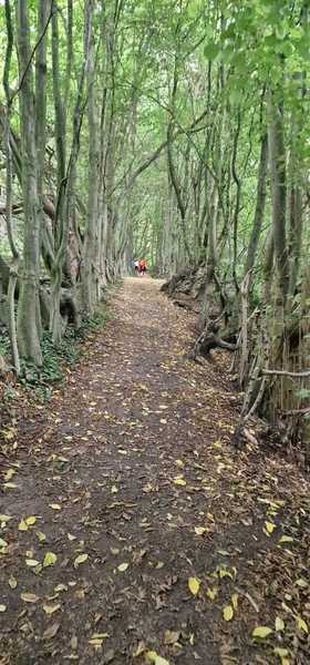 Für Sonntag stand nach dem Frühstück eine Mini-Wanderung zur sehenswerten Krukenburg auf dem Programm. Diese ehemalige Kirchenburg überraschte uns mit einer wundervollen Aussicht auf den Reinhardswald und dessen Umgebung. Sonne, Wind und die schnell dahinziehenden Wolken ließen sowohl die Burg als auch den Blick in das Umfeld irgendwie mystisch erscheinen. (Wen es interessieren sollte: Die Kirche der Krukenburg wurde nach dem Vorbild der Heilig-Grab-Kirche in Jerusalem errichtet.) Eine verdiente Belohnung für die körperlich anstrengende Aktion des Vortages. Zurück wanderten wir zum wiederholten Mal einen Waldweg, ähnlich einem Mangrovenwald, mit verwunschenem meditativem Charakter.