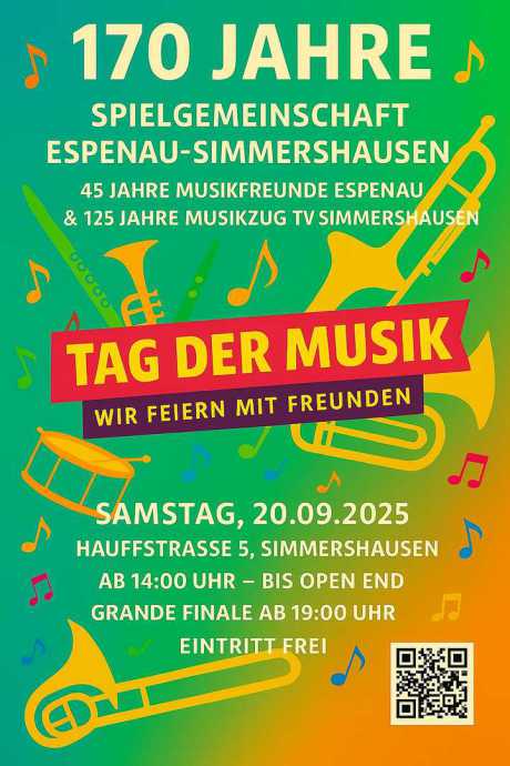 Und 2025 stehen noch weitere spannende Jubiläen, Auftritte und Möglichkeiten an – unter anderen das Heimatfest in Espenau, an dem die MusikerInnen am 31. Mai und 01. Juni für musikalische Unterhaltung sorgen werden und das Kurkonzert in Bad Arolsen im September 2025. Zudem feiern die Musikvereine am 20. September gebündelt das 125. Jubiläum des Musikzugs Simmershausen und das 45. Jubiläum der Musikfreunde Espenau. Am 25. Oktober wird außerdem Oktoberfest in Simmershausen gefeiert.